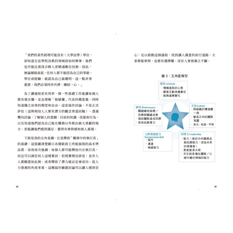 ※五角星評估模型:評估員工在態度、文化、領導力、人際溝通能力和績效等五個層面的潛力。