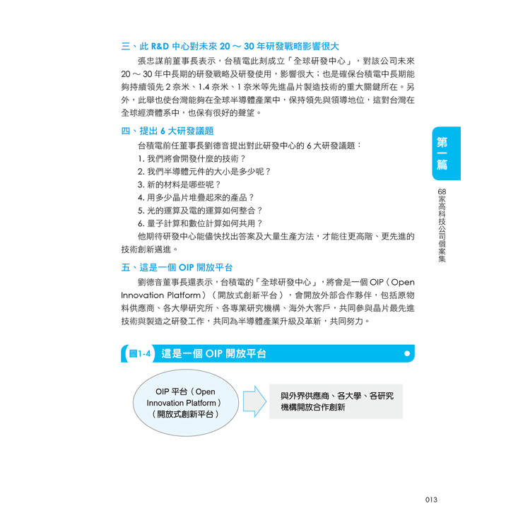 本書精挑細選出這 68 家高科技公司,都是各行各業、各技術專長的典範公司,可以供國內數萬家高科技公司或傳產公司參考借鏡之用。相信必能有助於這幾萬家公司的更茁壯、更成長的未來之路。