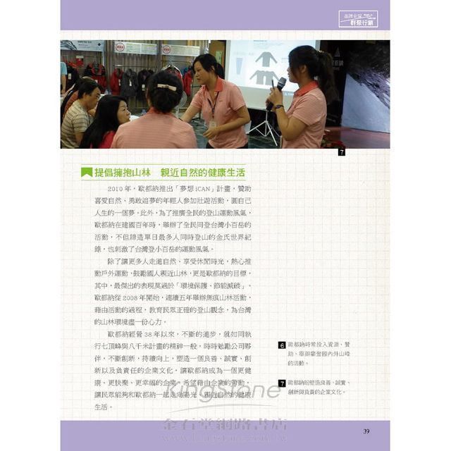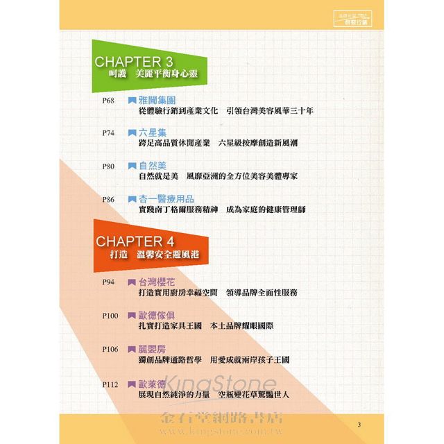 《品牌台灣.群聚行銷》,是繼《繁盛品牌.台灣奇蹟》的最新力作,我們從台灣服務優良品牌協會的眾多優秀會員裡,挑選了33家企業作為故事的主角。透過他們的分享,讀者得以了解引領台灣商業服務業的企業家們,如何成功地打造品牌、創新服務、群聚行銷。盼此專輯的出版,提升台灣優良服務品牌的形象與知名度,推廣台灣企業的品牌價值,增進國際競爭力。這本精彩絕倫的品牌故事寶典,不容您錯過!