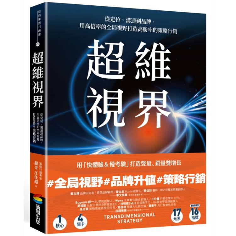 「本書的價值不只在於理論,更在於它深深扎根於實戰。從跨國電商的行銷顧問經驗,到協助傳統產業轉型的案例,作者把市場的試煉與反思,淬鍊為『超維十七元』。這些元素涵蓋了領導、團隊、現金流、創意、社群、社會責任等等,無論你是跨國企業、中小企業,甚至個人品牌,都能找到對應的座標。」──蔡佳芬/醫師、璞之妍醫美集團創辦人