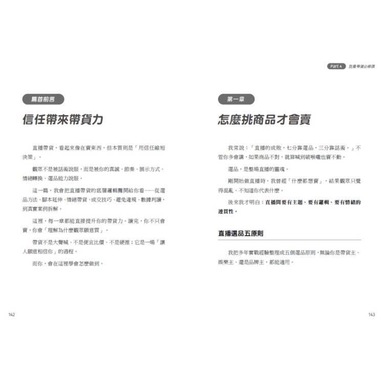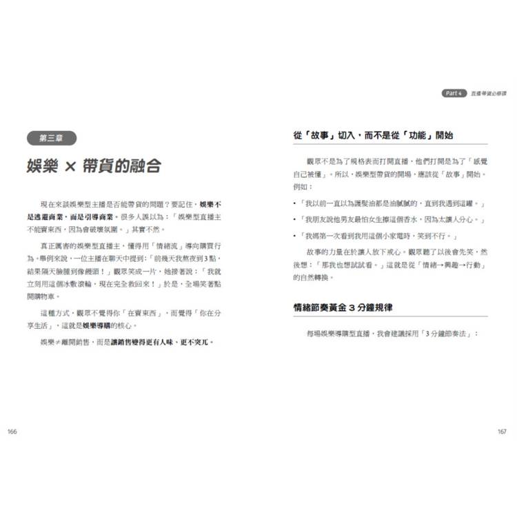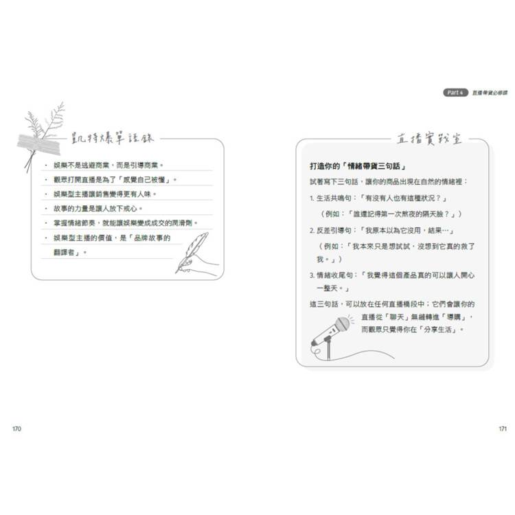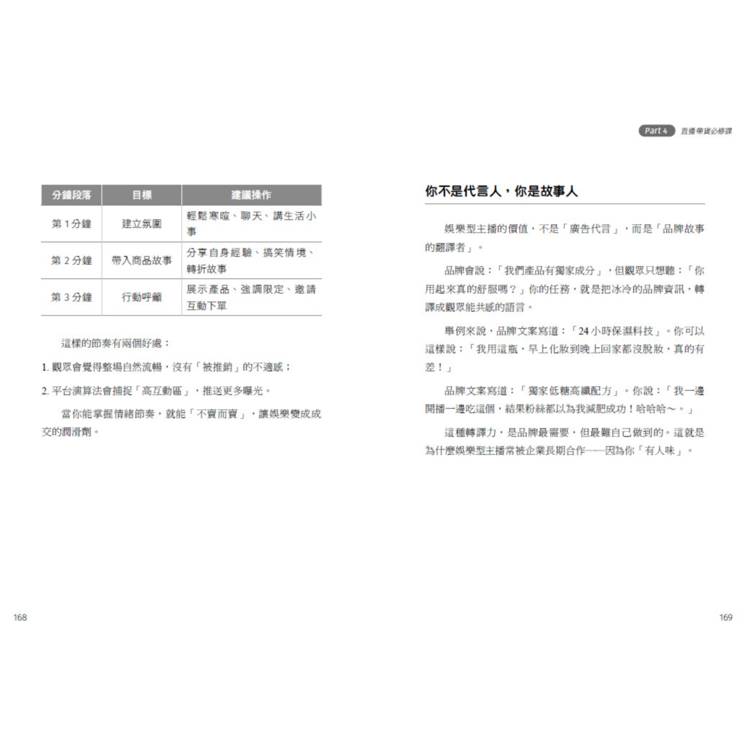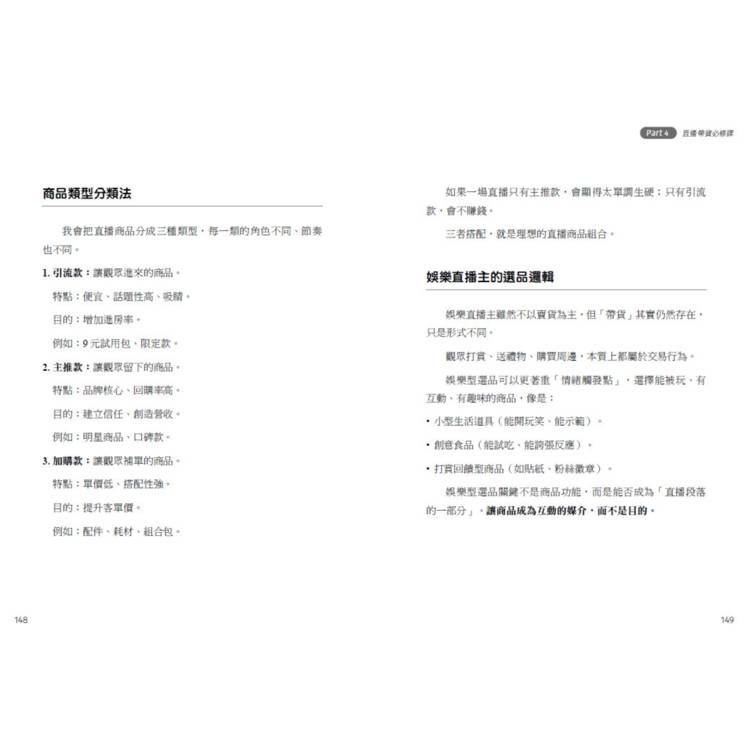 這本書,不會教你在直播世界裡一步登天。它會陪你一步一腳印地學會:怎麼開場、怎麼互動、怎麼賣、怎麼留人;但更重要的,是讓你理解──直播不是一場表演,而是一場「共感」。當你願意面對鏡頭展現自己,那一刻起,你就已經贏了一半。