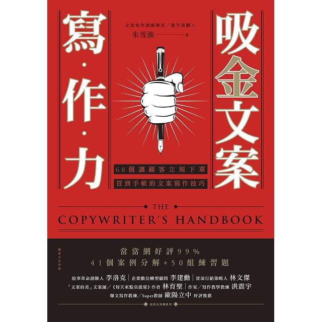 「學文案的路上,只讀一本書是不夠的,但是在眾多文案教學書的選擇裡,一定會有這本的存在。」──「文案的美」文案師 /《每天來點負能量》作者 林育聖