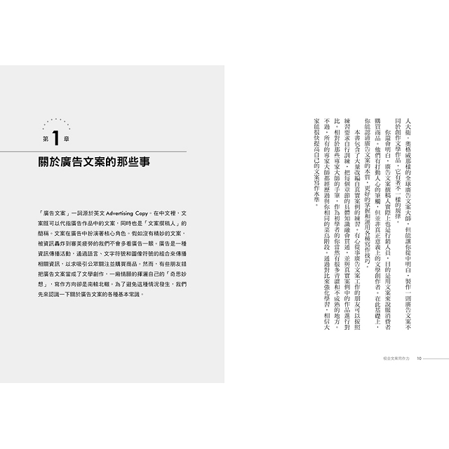 想要寫好廣告文案先得瞭解相關的基礎知識。本書的第一章和第二章分別介紹了廣告文案的基本常識與文案撰稿人應當具備的能力素質。在接下來的章節中,我們將從前期準備開始,一步一步講解廣告文案的寫作過程及寫作技巧。
