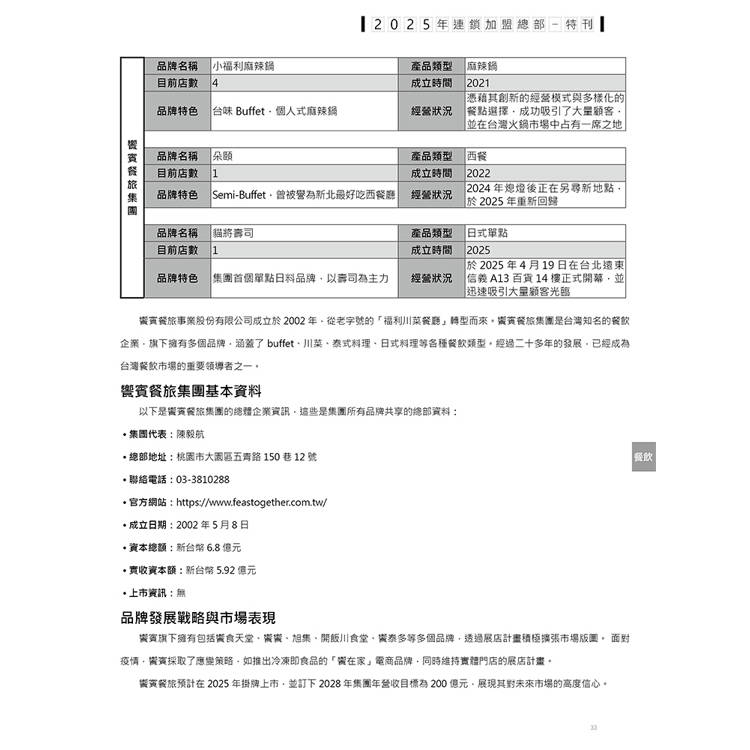 2025年連鎖加盟總部特刊:連鎖加盟品牌資訊/連鎖加盟總部基本資料統整