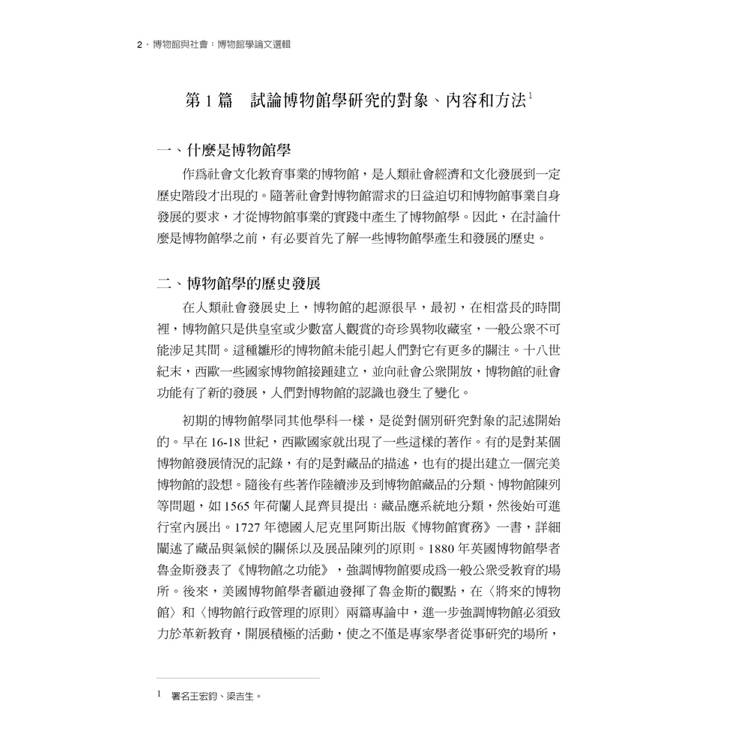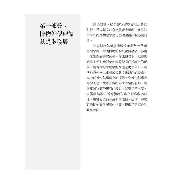 本書收錄博物館學相關研究論文六十多篇,時間從1980年代至2022年跨越世紀40年。回顧博物館學建構的學理基礎、發展歷史,以及博物館學教育、國際博物館學將來的發展趨勢等。提供讀者綜合的觀察面向,期能激盪思考,開創博物館學研究新局面。