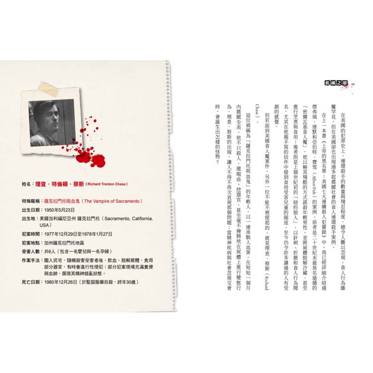 而這本書,寫的就是我們現實生活中的「饕餮」――那些吃人肉的殺手們。他們不是神話,也不是恐怖片裡的角色,而是真實存在過的怪物。