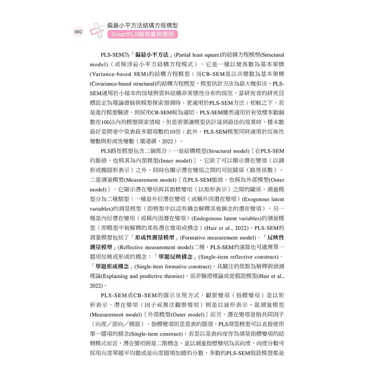 ⊙理論與實務兼顧:兼顧PLS模型之理論基礎與實務應用,從測量模型建構到結構模型評估,全面涵蓋相關內容。