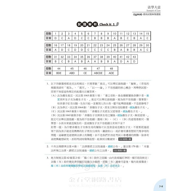 今年的改版重點是加入最新試題與複選題。最新試題包含102年地方特考、103年初考、103年身心障特考等三項考試試題,編排上仍然和前面6個單元一樣,按主題分類,以便利讀者加強練習。將最新考題抽離出來練習,讀者可以發現「考古題」在初考、五等考試出現頻率之高,可能是所有考試之冠。換言之,練習考古題是投報率超高的上榜捷徑,請各位讀者一定要勤加練習!
