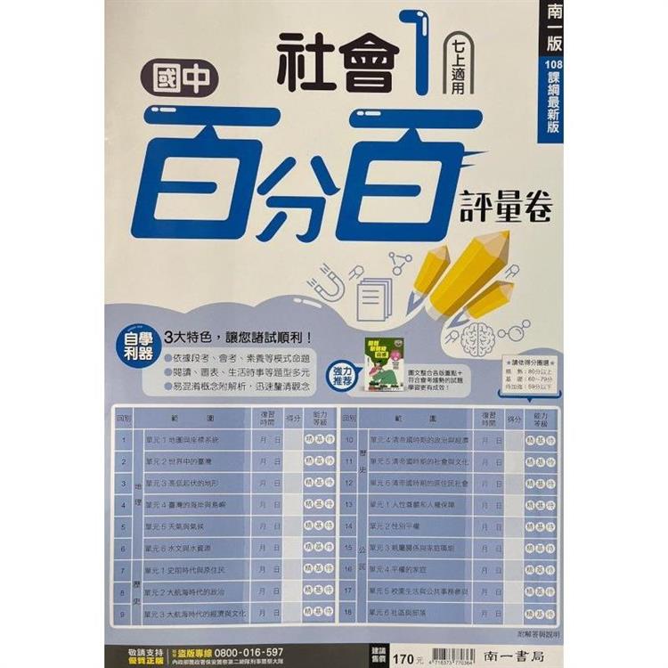 國中南一百分百評量卷社會一上{112學年}