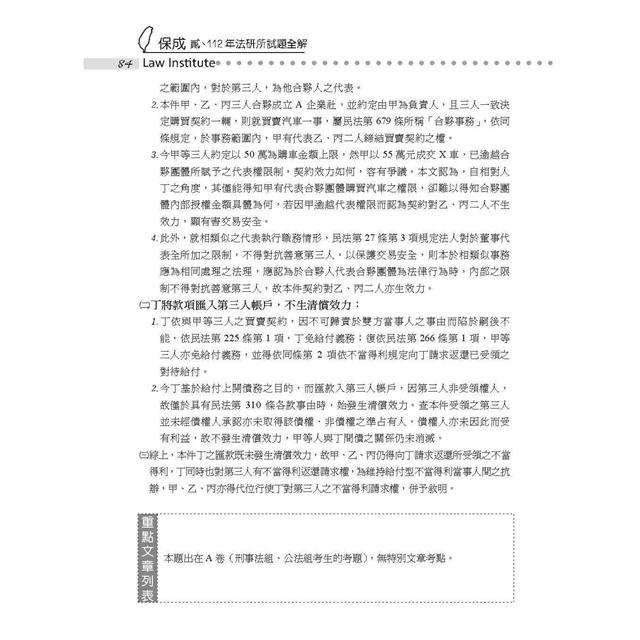 112年法研所試題全解.司律二試考點總複習-司法官.律師(保成)