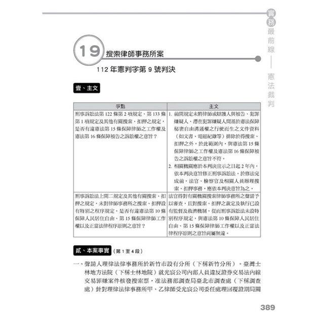 1.完整收錄111年憲判字第11號至112年憲判字第9號共19個憲法裁判。