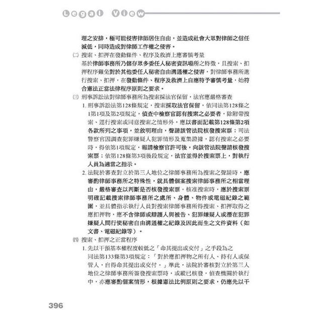 Q4 系爭規定一、二及其他有關規定,未對律師事務所之搜索、扣押設有特別程序規定,是否有違憲法第10條居住自由、第15條工作權以及正當法律程序原則? ‧401