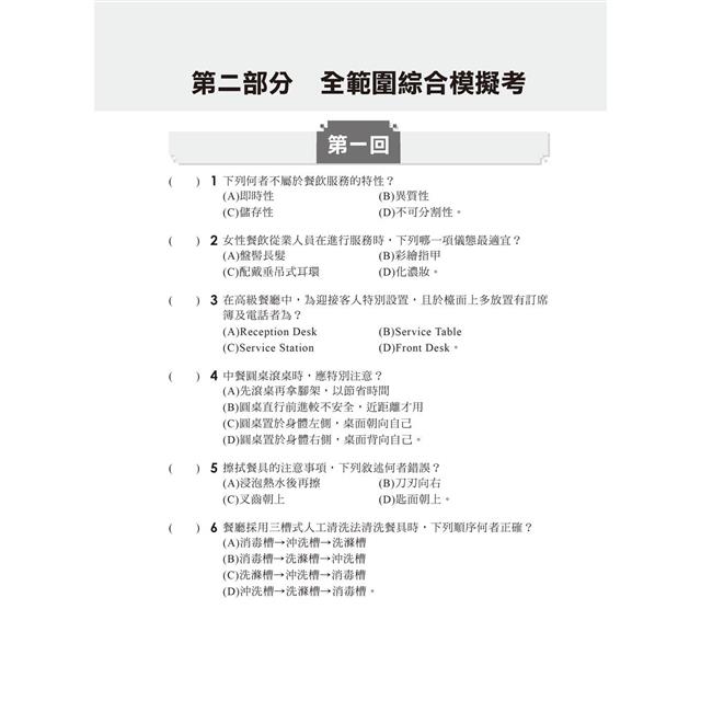 2024【系統分類題庫】餐飲服務技術[歷年試題+模擬考](升科大四技二專)