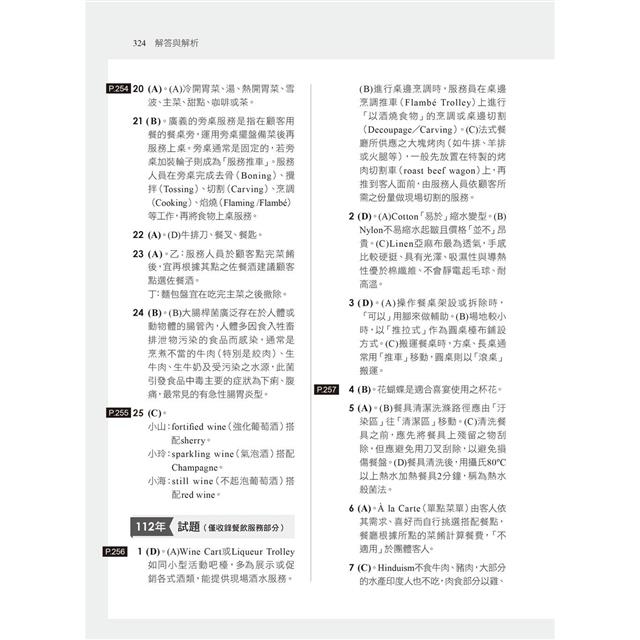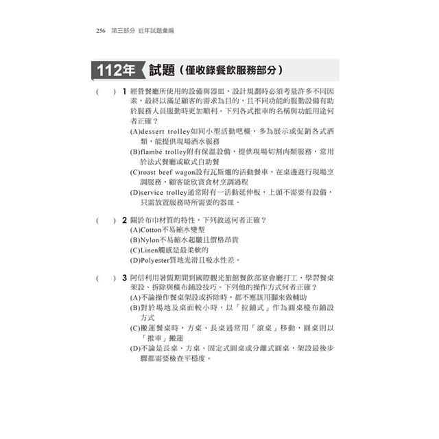112年 試題(僅收錄餐飲服務部分)