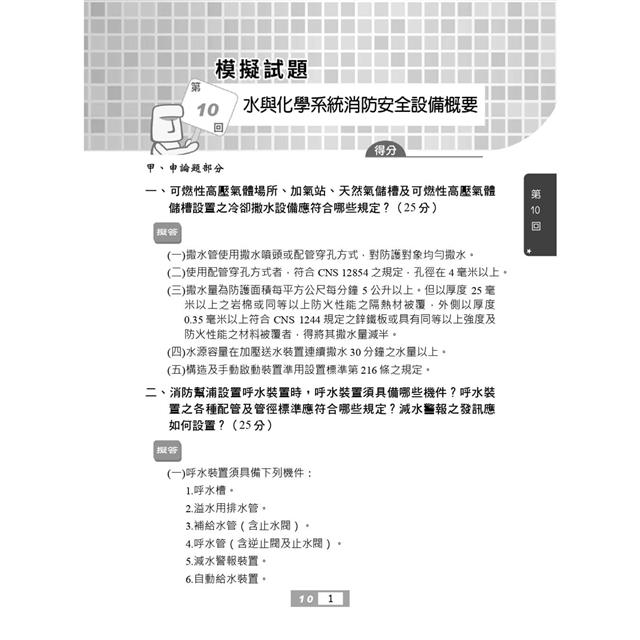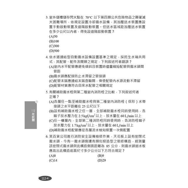 這本《水與化學系統消防安全設備概要》適用於專門職業及技術人員普通考試消防設備人員考試之消防設備士類科。