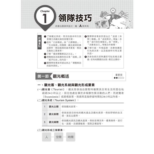 透過您多管齊下的努力,相信您必能一舉過關,實現擔任導遊或領隊,走遍天下的美好人生。