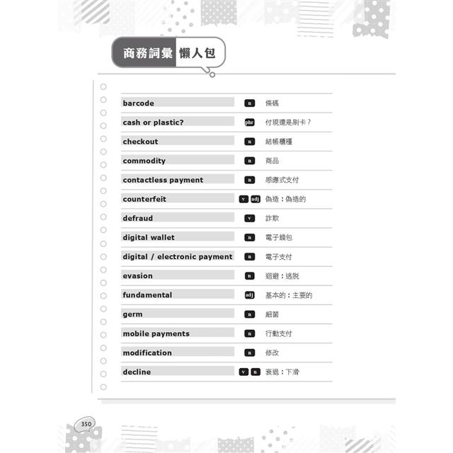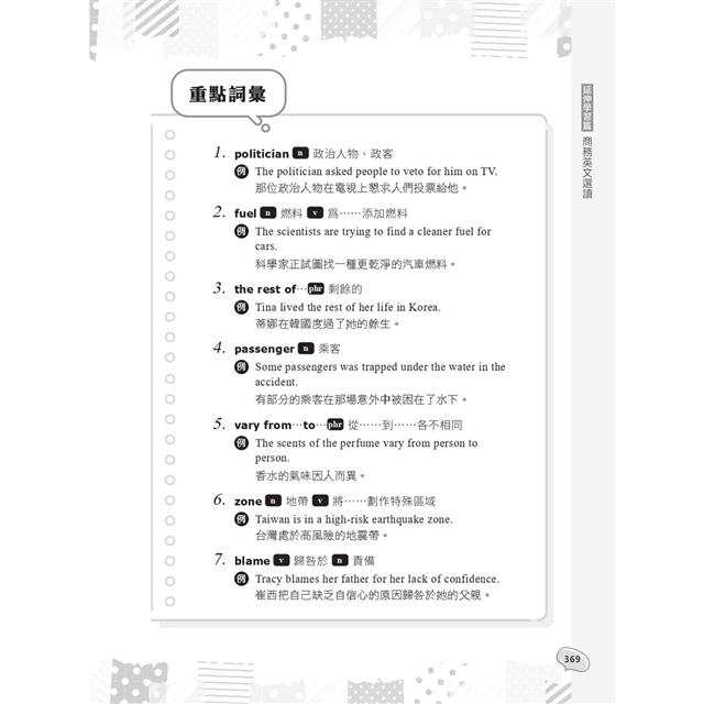 本書彙整歷年常考的單字、片語及句型,幫助考生釐清文法觀念,提供深入的解說與例句補充,加深記憶與理解力。內文搭配學習評量,可快速驗收學習成效,厚植應考實力。