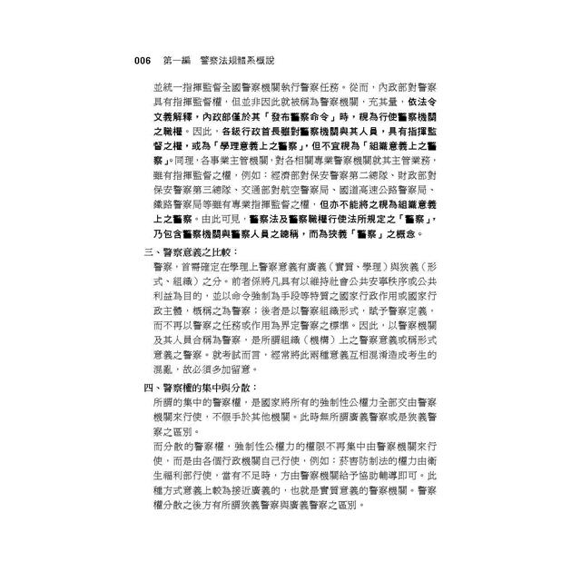 警察法及相關法規以體系化予以整理,協助建立其架構、概念。