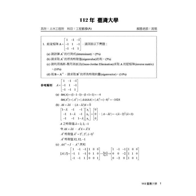 本書收錄國內各重點大學研究所110~112年【工程數學】共三年試題含解析。