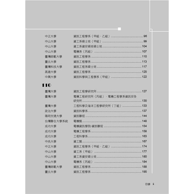 本書收錄學校:臺灣大學、政治大學、陽明交通大學、台灣聯合大學系統、成功大學、中央大學、中正大學、中山大學、臺灣師範大學、臺北大學、台灣科技大學、暨南國際大學、高雄大學、清華大學、中興大學