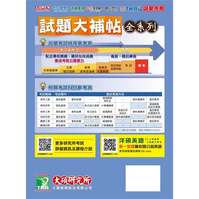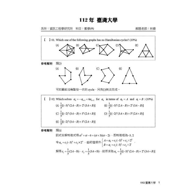 本書收錄國內各重點大學研究所109~112年【離散數學】共四年試題含解析。