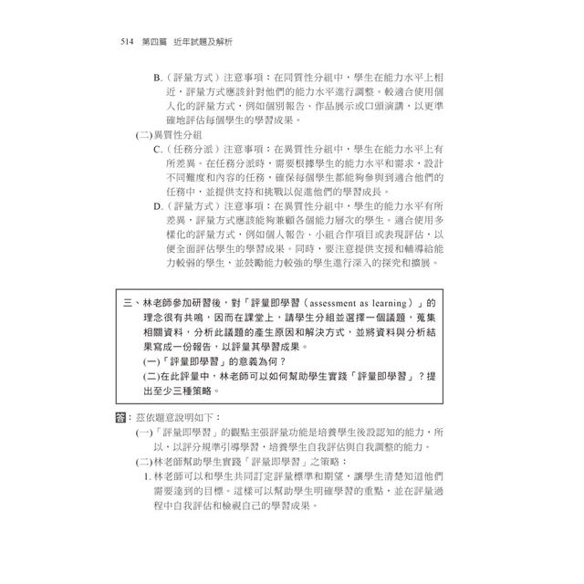 關於「綜合題題型」的破解關鍵,本書精編了模擬試題,讓你熟悉最新的「綜合題題型」出題方式。但萬變不離本宗,你必須精熟教育專業科目相關知識,才能順利通過教師檢定,成為準教師。