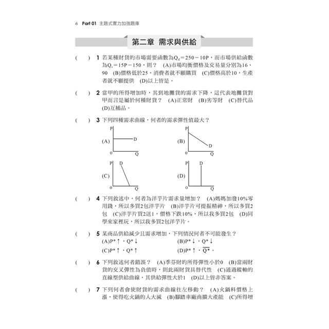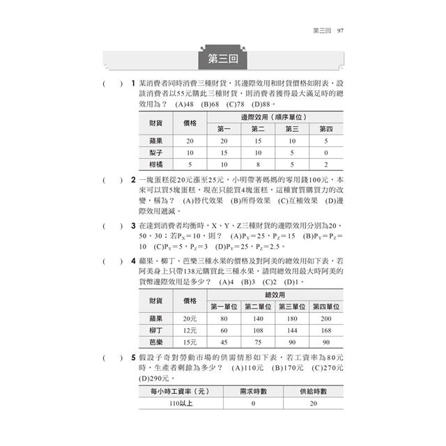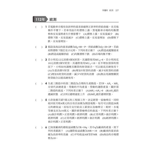 2.全範圍綜合模擬考:模擬升科大編排22回的模擬試題,每回內容均以統一入學測驗的命題比例,收錄的是以普考、特考、證照考試等與統一入學測驗的命題大綱有相關的考題。若能按部就班徹底研習本書,則「經濟學」這一科在統一入學測驗上獲取高分絕非難事。