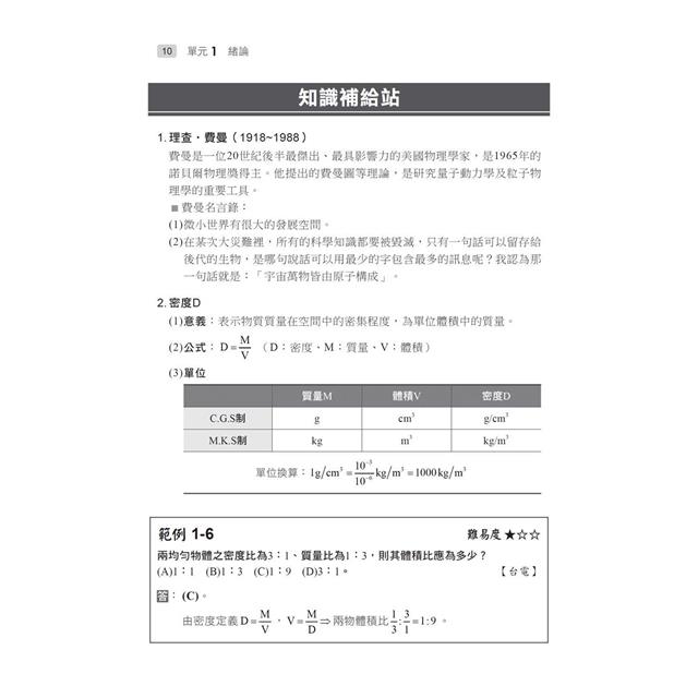 內容將單元概念圖像化,提升學習效率並快速複習,以條列式或表格式重點整理,內容循序漸進且搭配範例做即時的練習及評量。建議在讀課文內容前後,各看過一遍單元架構,學習上有事半功倍的效果。
