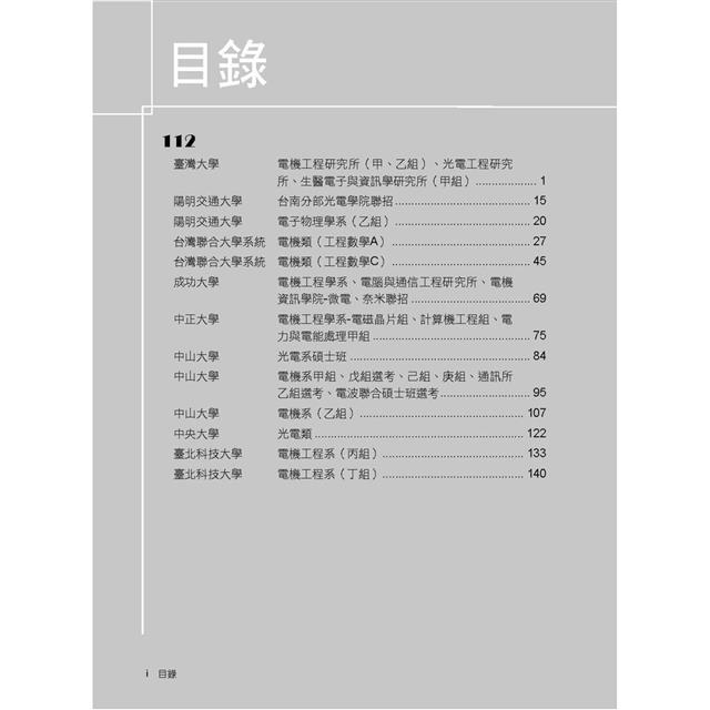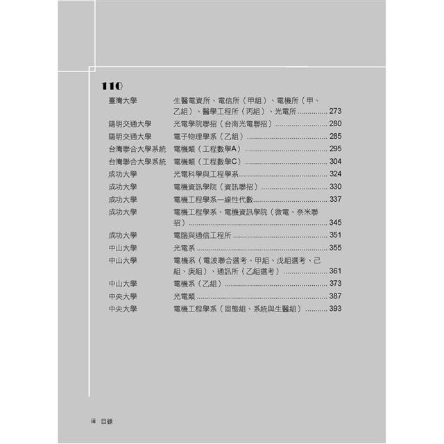 本書收錄國內各重點大學電研所110~112年【工程數學】共三年試題含解析。