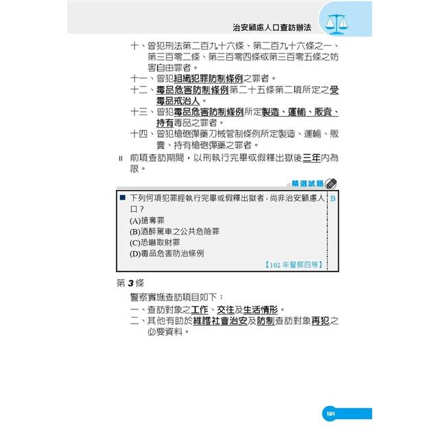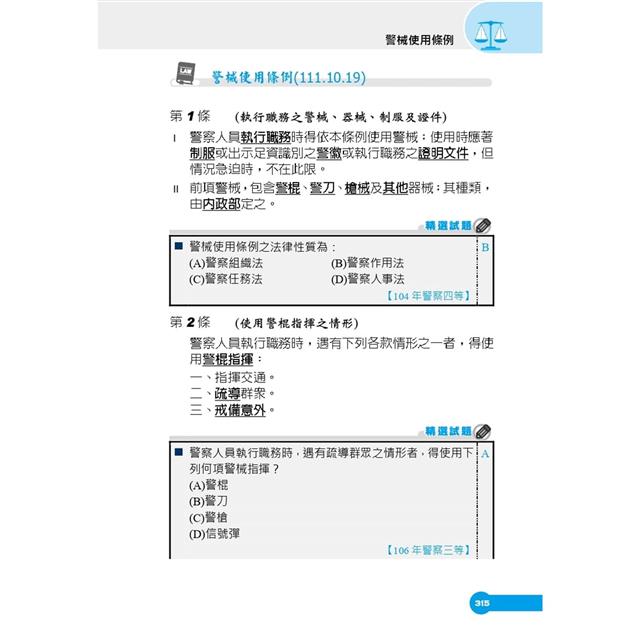 ★內嵌102~112年警察人員三、四等試題,法規與試題同步吸收!