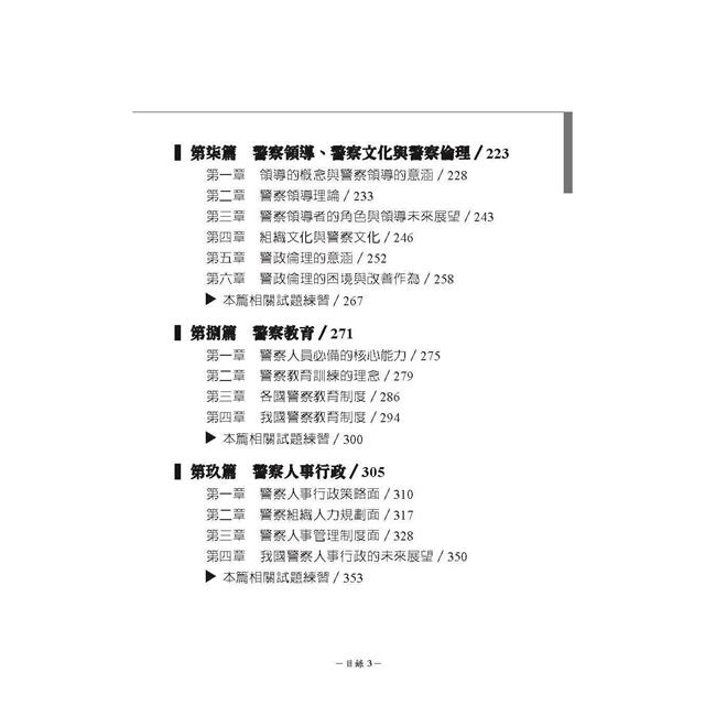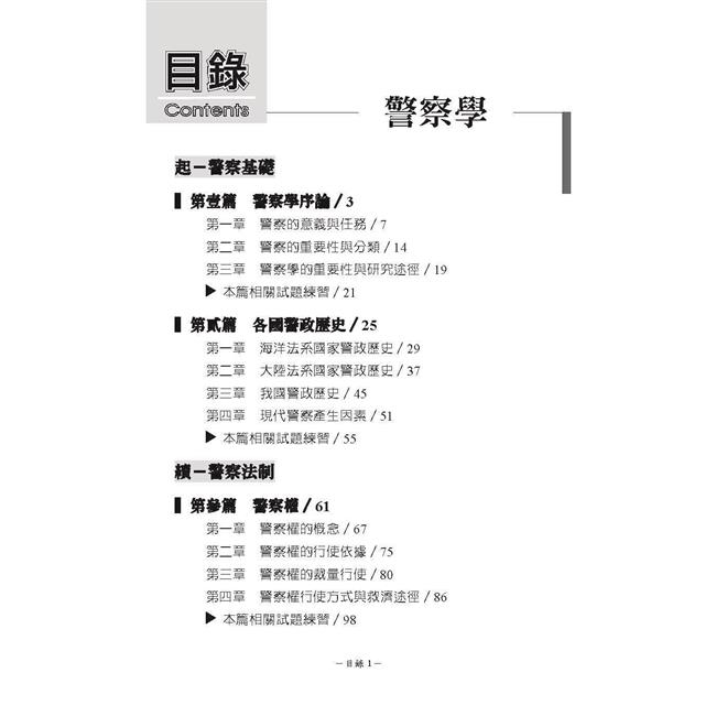 由於多數研讀者未曾於警察學校或過往考試接觸本科,因此本書各篇章皆有導讀,說明章節重點,並繪製心智圖,協助同學快速吸收重點,獲致高分。