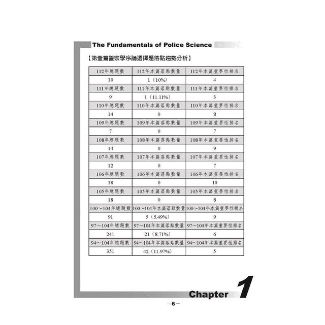 今年警察學的考試題目就相對性而言是一個CP值比較低的科目,要念的很多但考得很少,本書的編成大多是由紀傑老師完成,紀傑老師對本書所下的功夫其實頗令人感佩。上次改版最主要的原因是因為公務人員救濟制度的變更,因應大法官會議解釋第785號之問世以及公務人員保障暨培訓委員會作出公務人員人事行為的新見解,針對警察人員救濟制度是必要作出調整,不能再依舊有之規定為之,而今年則是因為警械使用條例的修正,特別是第11條救濟的修正,因此必須做出相關書本的修訂,今年警察學申論試題相對性的簡單,甚至只要熟讀警察勤務跟法規也可以獲得不錯的分數。今年的命題大致上是由校外老師命題,大幅降低了洩題風險,所以考試公平上大家還是好好用功,不要再相信不可靠的傳言了。警察學,筆者曾經短暫任教過,後來在考試改成雙軌制後交由紀傑老師任教,但因為紀傑老師俗務繁身就又回到了我的身上,這幾度離合真是像極了愛情。現在的警察學跟我當時任教時的警察學可真是天差地遠,好在紀傑老師編書的功力很高,馬上就讓我重新上手。