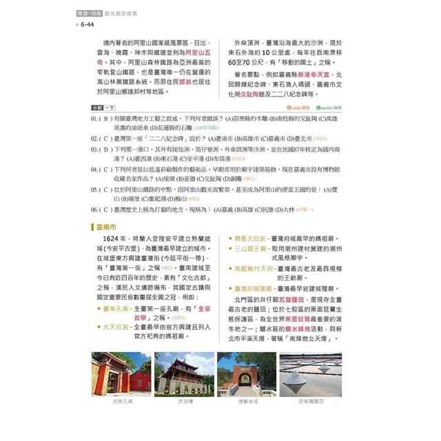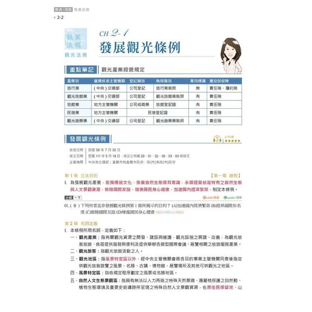 全國第一本高規格「彩色圖文印刷」領隊、導遊評量用書,選用日本進口紙質,高彩油墨印刷,顏色鮮明活潑,好讀又舒服。透過彩色圖片搭配表格系統化編排,貼心標示「關鍵紅字」,讓你一眼就能辨識必考重點,學習充滿活力!