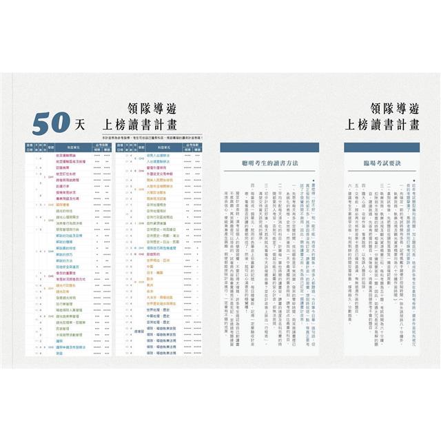 ● 50天上榜讀書計畫參考表,考生依照必考指數,快速抓分