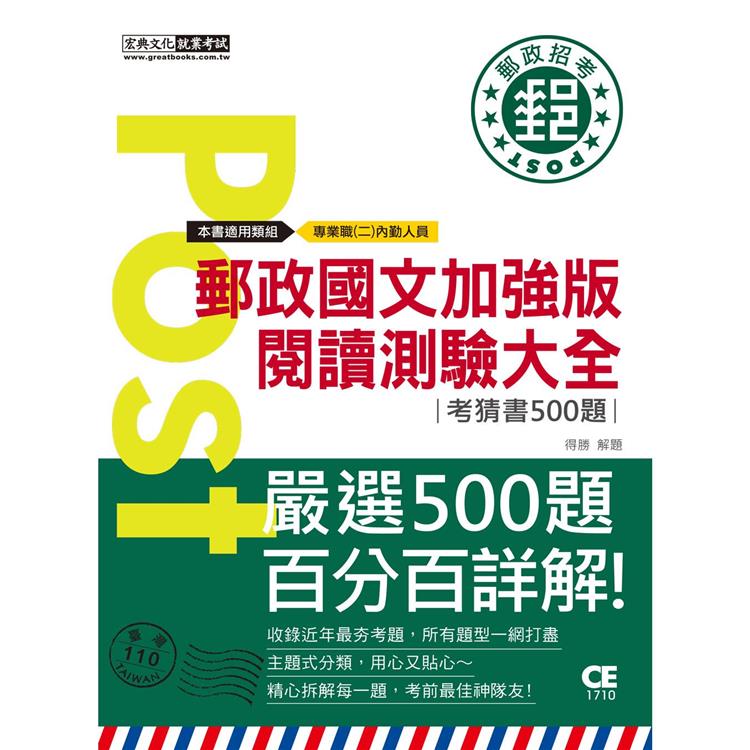 最後,坊間各大出版社推出許多古文閱讀相關書籍,但內容多是羅列許多古典名篇讓考生閱讀、記憶,但未經一番實戰演練,哪得自我實力增長呢?所以選購宏典文化出版的《郵政國文考猜:閱讀測驗大全》,才是強化自我應對閱讀測驗能力的不二法門。