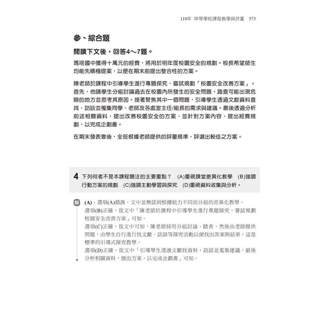 110年開始的教檢考試,在科目與題型上進行大幅度的變革。尤其新增加的「綜合題」,目的在測試高層次綜合思考能力。由於過去教檢與教甄的題目大都是選擇題與問答題,面對新增的綜合題,難免會無所適從。