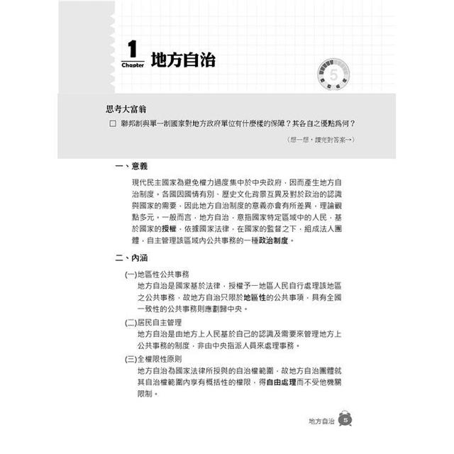 這本《地方自治概要》(書號:9786267353455)具有下列特色: