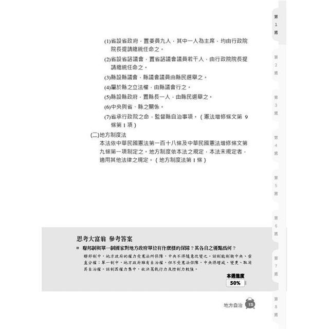 》八週進度安排,攻克地方自治考科