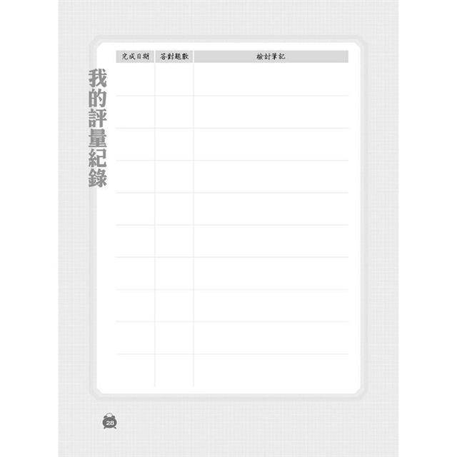 每讀完一章即可記錄完成日期,章末更可看出目前的每週進度如何,令讀者能檢視自己努力的過程。透過每週設立短期目標,幫助考生循序漸進、紮紮實實的抓穩各章重點,在八週內帶讀者完整學習一個考科,並讓讀者有充足的熟悉度進入考場應考,輕鬆獲取高分。