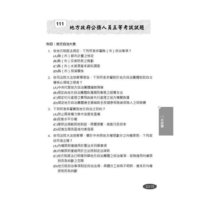 111年地方政府公務人員五等考試試題