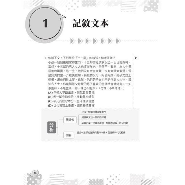 本書蒐集大量考古題並以文本類型分類,每題均附上心智圖解析,幫助考生迅速抓到重點。