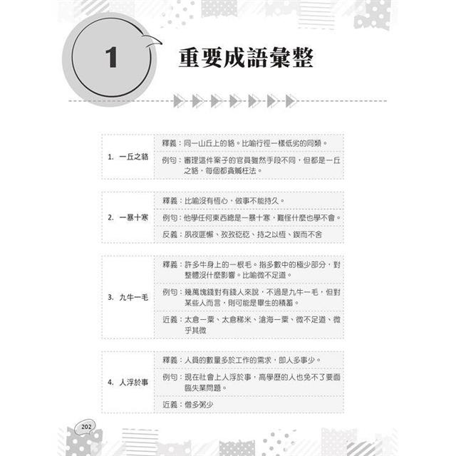整理超過一百條重要成語,每條成語均附有解釋與例句,易懂易讀。