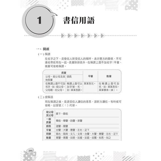 收錄令大多數考生頭痛不已的書信結構用語,將之濃縮並以圖表統整,只要花點時間背誦,考出來立馬拿分。