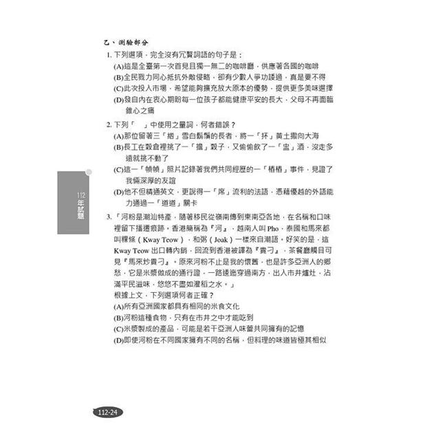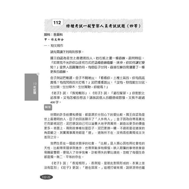 書末收錄111-112年公務人員高普考,以及警察、司法、身障、原住民、地方特考等三四等考試共22份,所有題目皆由三民補習班國文名師群提供詳盡解析,幫助讀者快速掌握命題重點,輕鬆破解考題!
