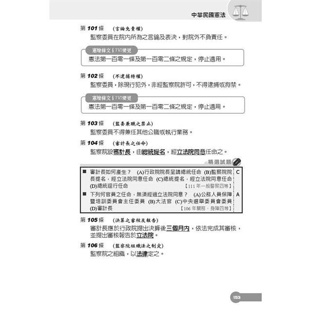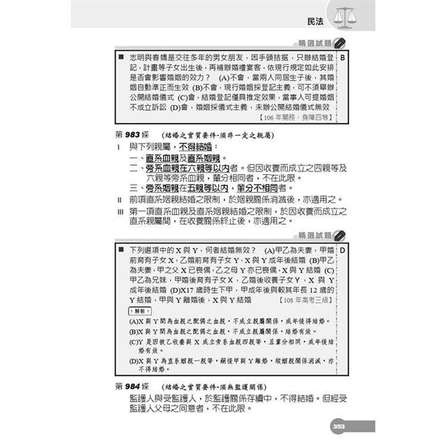 對於沒有法學基礎的考生來說,法律文字用語專業,條文內容又多又長,如果沒有耐心細心記憶,容易錯失正確答案。本書由趙雍老師親自研究102~111年高考三級/普考/一般警察三等&鐵路高員三等/一般警察四等/鐵路員級/司法三等/司法四等/地特三等/地特四等/關務&身障三等/關務&身障四等相關試題,再將相同條文考點的試題彙整嵌入相對應的法條之後,以顯眼特殊設計標示得分關鍵字。條文後題目愈多表示愈常被命題,讀者可立即知悉被頻繁命題的考點。
