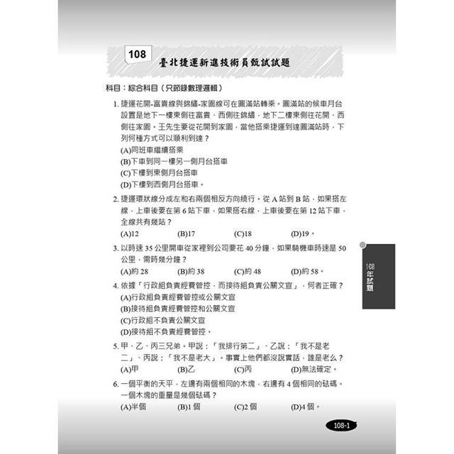 廣泛網羅104年至108年各大捷運與銀行招考的試題共39份,試題量相當豐富,讀者可透過大量的演練,很自然的體會本科之命題趨勢,答得既快且準不是夢!