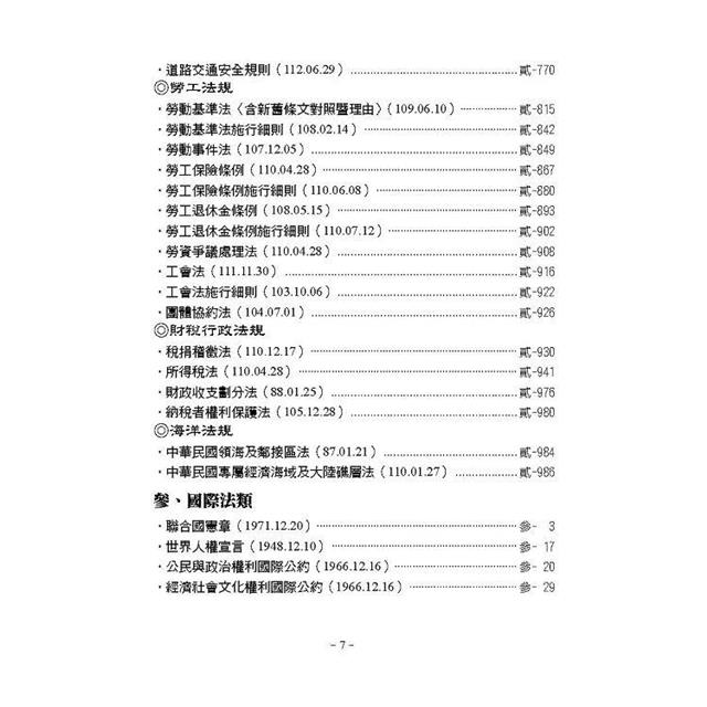 二、立法條文:重要法規之文字加框呈現,以利查閱。項次以羅馬數字Ⅰ、Ⅱ……標明。