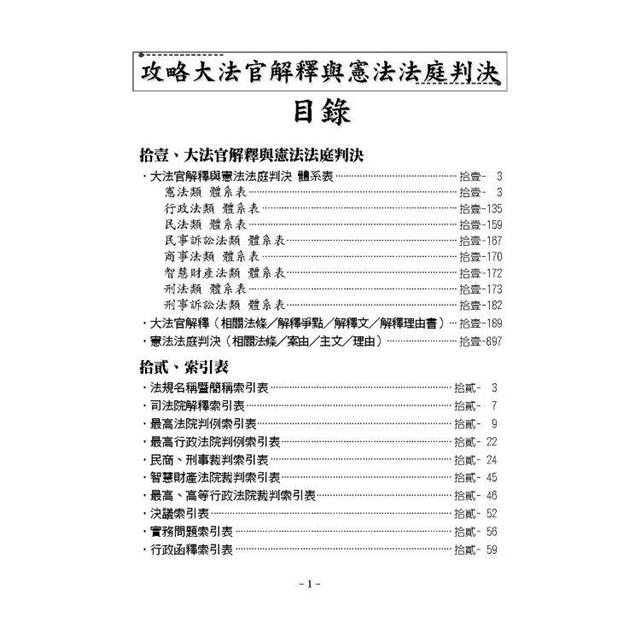 十二、索引表:書末附有法規名稱暨簡稱索引表,並附有解釋、判例、裁判、決議、法律問題之索引表,依年代先後排序,以利檢索。