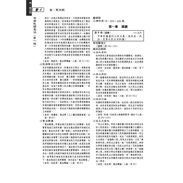 十一、大法官解釋:本書收錄大法官解釋解釋爭點、解釋文全文,並精心設計大法官解釋體系表。係以法典出發,或與坊間論著略有不同,僅供讀者參考。