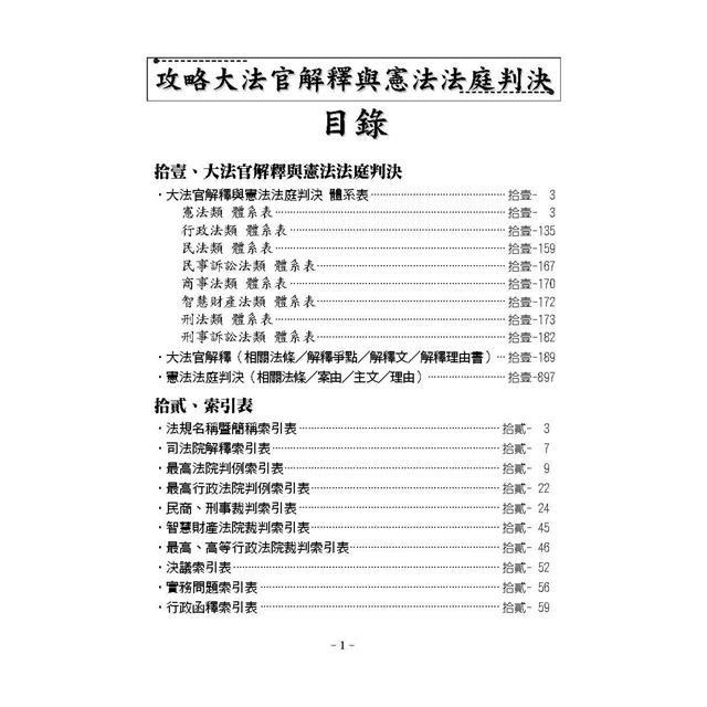 索引表:書末附有法規名稱暨簡稱索引表,並附有解釋、判例、裁判、決議、法律問題之索引表,依年代先後排序,以利檢索。